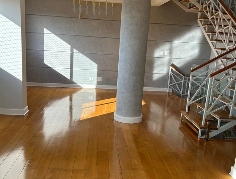 Cuidamos dos pisos para que fiquem brilhantes e livres de sujeira.